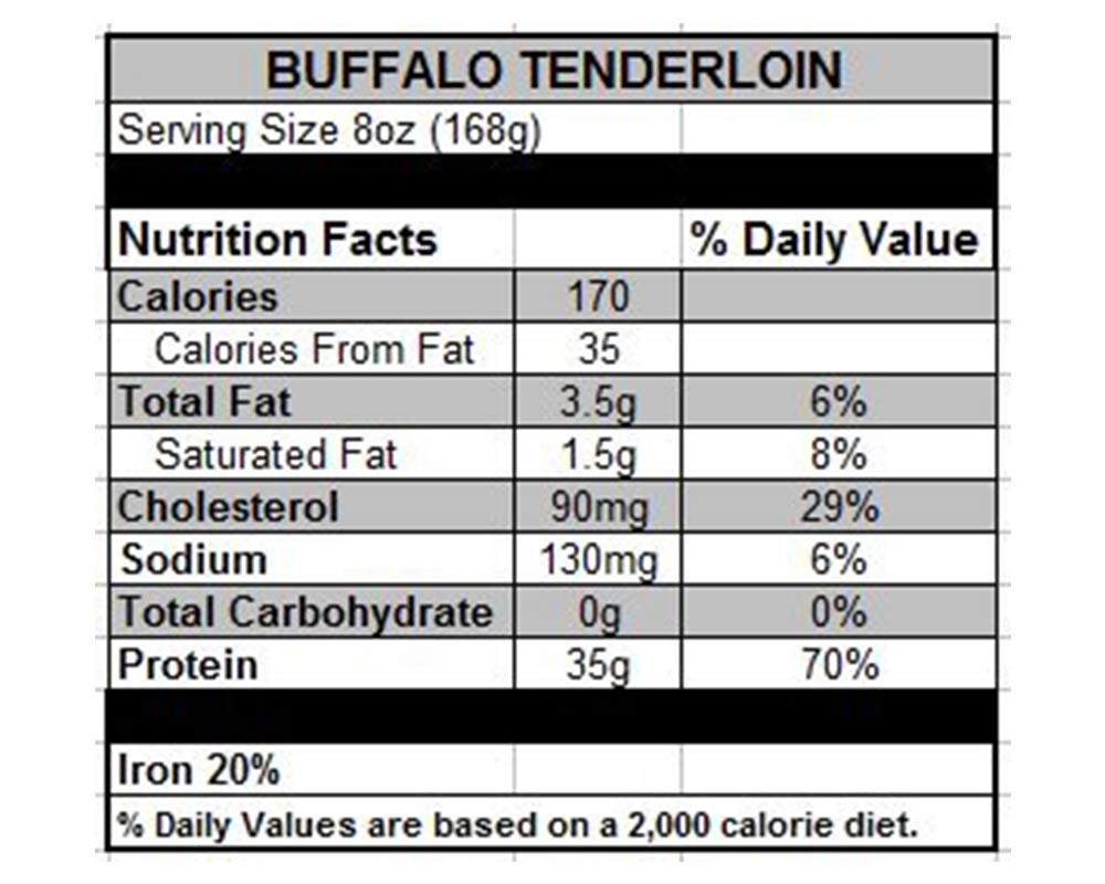 Our Bison Tenderloin Roast is the most tender bison cut available. With half the fat of beef and double the iron, bison is a heart-healthy red meat with a uniquely sweet flavor. Bison is best cooked at low temperatures to preserve juiciness and flavor.